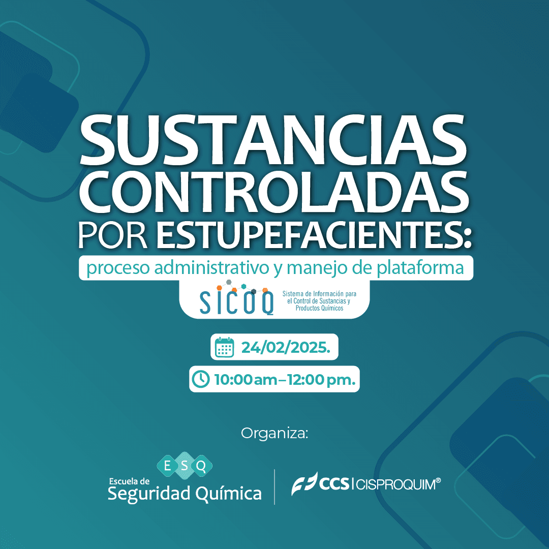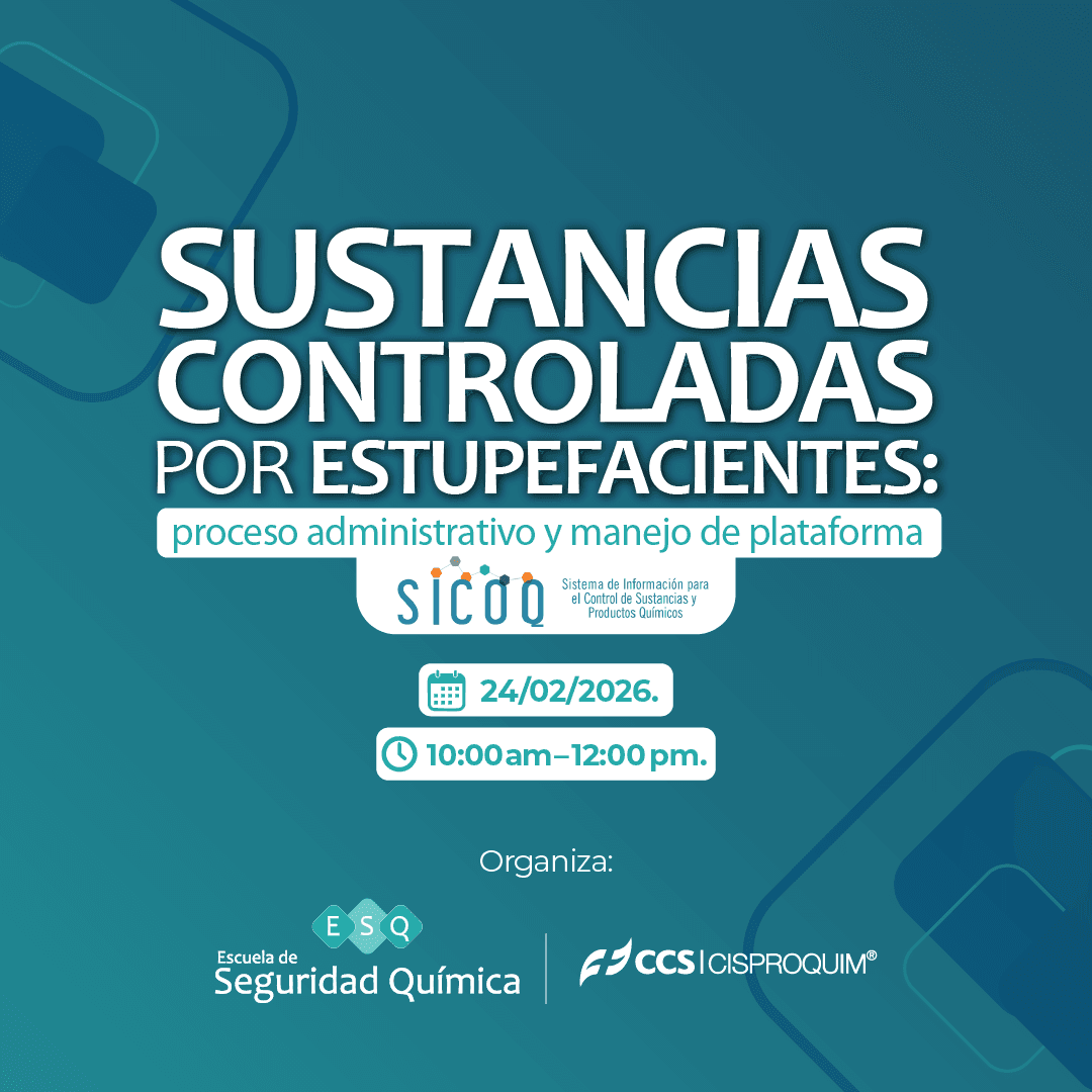 Soluciones de Seguridad Química S.A.S (ESQ), en alianza con CISPROQUIM organiza este evento con el objetivo de instruir en los requisitos legales y el proceso administrativo para el manejo de sustancias controladas por estupefacientes mediante el uso adecuado de la plataforma SICOQ, asegurando el cumplimiento de la normatividad vigente para evitar incumplimientos y sanciones.